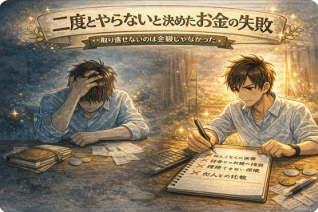 ※取り返せないのは金額じゃなかった 正直に言う。お金の失敗は、たくさんやった。 大きく失った 遠回りした 時間も削った でも一番つらかったのは、 お金が減ったことじゃない。自分を信じられなくなったこと。 この記事は、後悔を美談にする話じゃない。 ... -