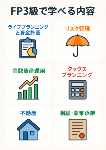 FP3級の試験範囲は大きく6分野。生活に直結するテーマばかりです。