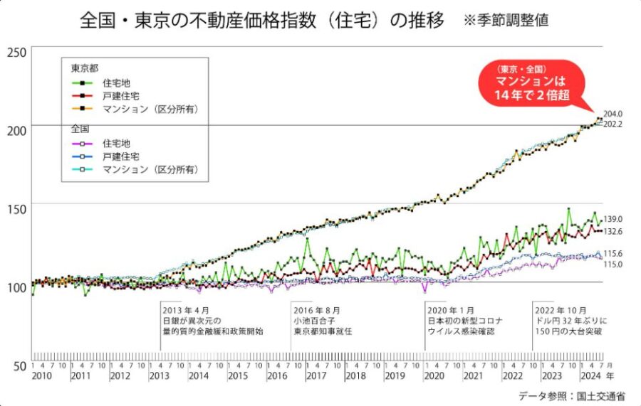 「戸建住宅はやや上昇」「マンションは急騰」という構図ができています。
